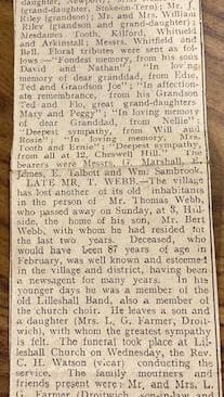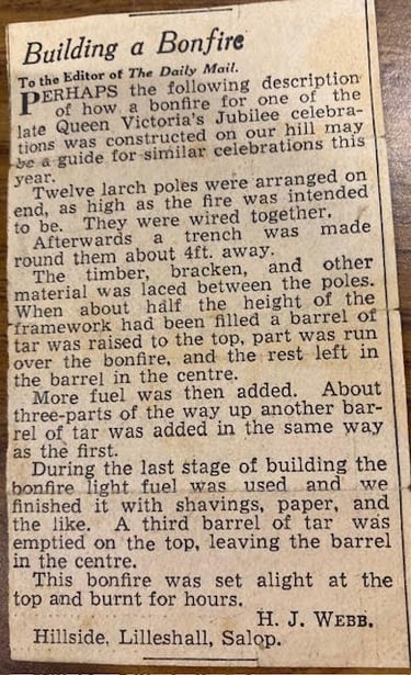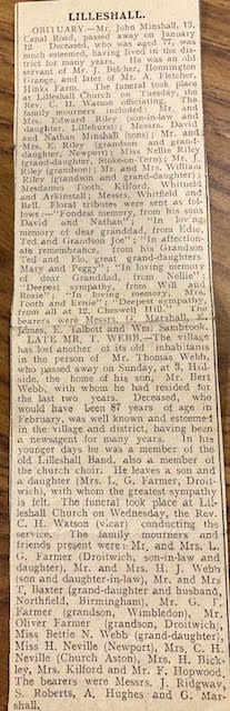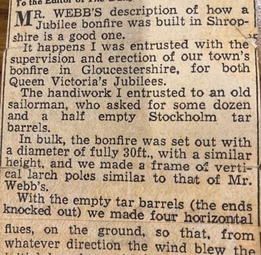 Bettie was very adamant that her father was a skilled shoemaker, not a cobbler - she made reference to the present house name being Cobblers Cottage. Her father, Mr H J Webb was also a local reporter for the Wellington Journal - see ‘Letter to the Editor’ of the ‘Daily Mail’ - on building a bonfire. (Separate article).
