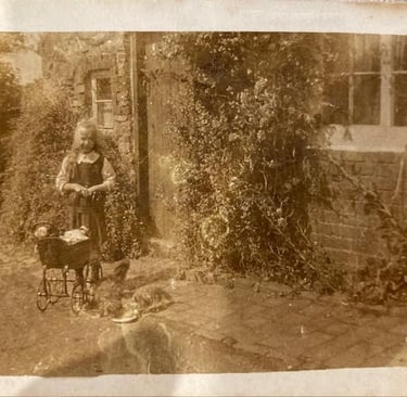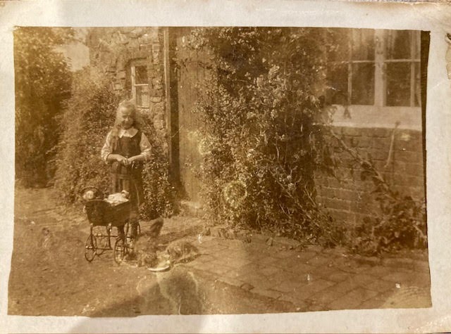 Bettie Egerton / Webb outside No.3 now Cobblers Cottage , Hillside east , aged about 5 years